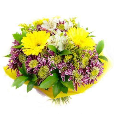 Солнечный, полный энергии и тепла букет из хризантем Сиреневое солнце - отличный подарок дорогому сердцу человеку.